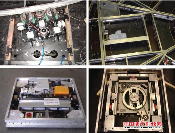 作为一家专业的移动车台公司,德国霍阿克焊接技术公司(以下简称霍阿克)试图使现有的霍阿克系统框架(Hoac ®SystemFrames)能够适应各种运动形式的要求,让设备更加灵活并实现其自动化控制(见图1),使之完美融入演出之中。为此,霍阿克公司与瑞典的视觉行为技术公司(Visual Act Technology)合作,利用其为巡演提供专业技术解决方案的优势,结合霍阿克独有的驱动技术,开发出多种不同的驱动技术解决方案(见图2~图5),被命名为“视觉行为—霍阿克车台系统”。